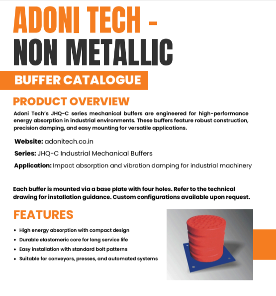 Adoni Tech’s JHQ-C series mechanical buffers are engineered for high-performance energy absorption in industrial environments. These buffers feature robust construction, precision damping, and easy mounting for versatile applications.